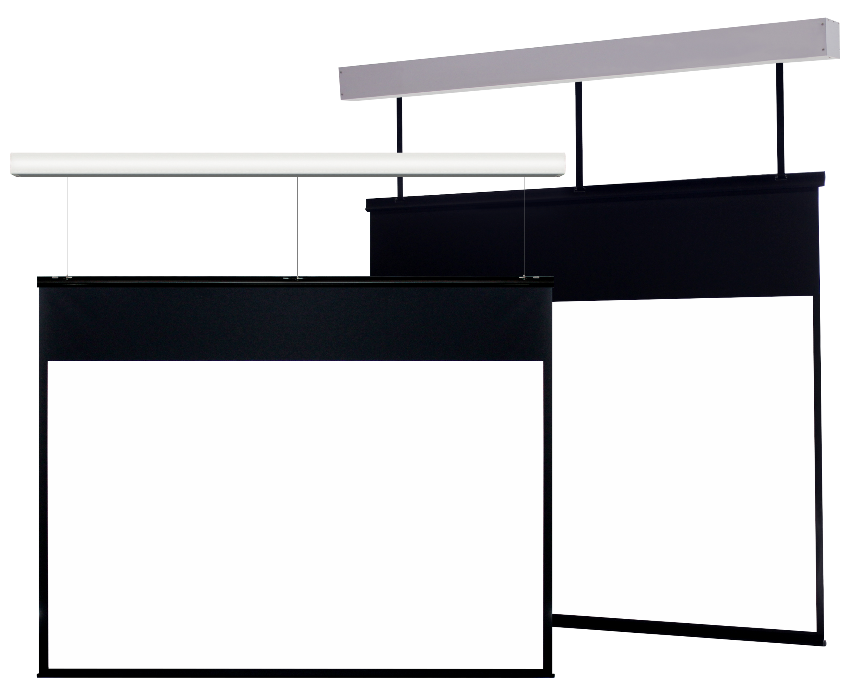 Elektrycznie rozwijany ekran projekcyjny z linii PROFESJONALNEJ SPECJALISTYCZNEJ z opuszczanym polem projekcyjnym, dedykowany do bardzo wysokich pomieszczeń.