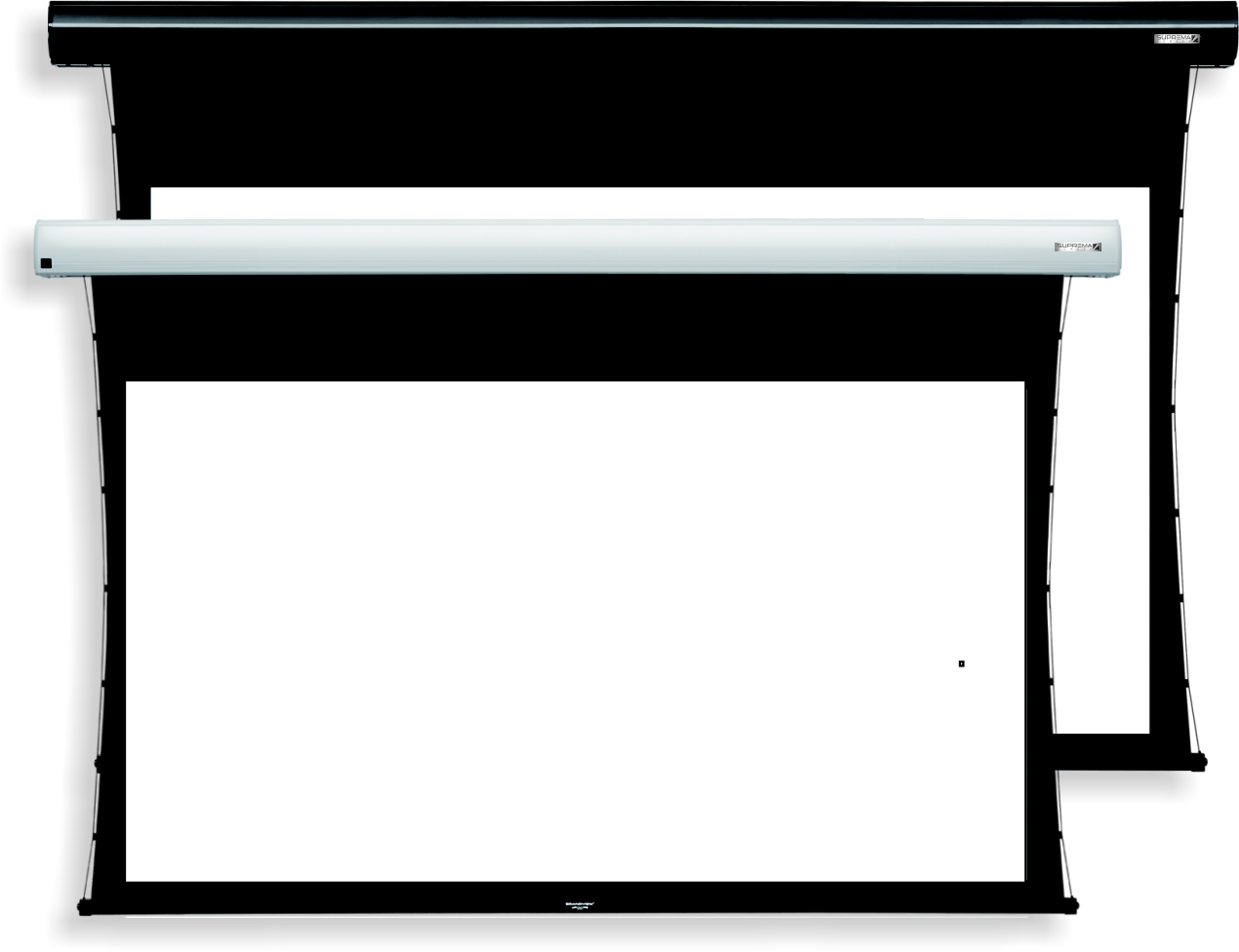 Elektrycznie rozwijany ekran projekcyjny z linii PROFESJONALNEJ PREMIUM z systemem bocznych napinaczy i zintegrowanym sterowaniem IR/RS/DryContact/Trigger12V.