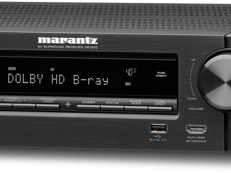 Ciesz się wyjątkową jakością dźwięku płynącą ze smukłego, 5,2 kanałowego amplitunera AV Marantz NR1510 z 4K Ultra HD, który zapewnia doskonały poziom dźwięku przestrzennego i Hi-Fi w połączeniu z kompaktową obudową.