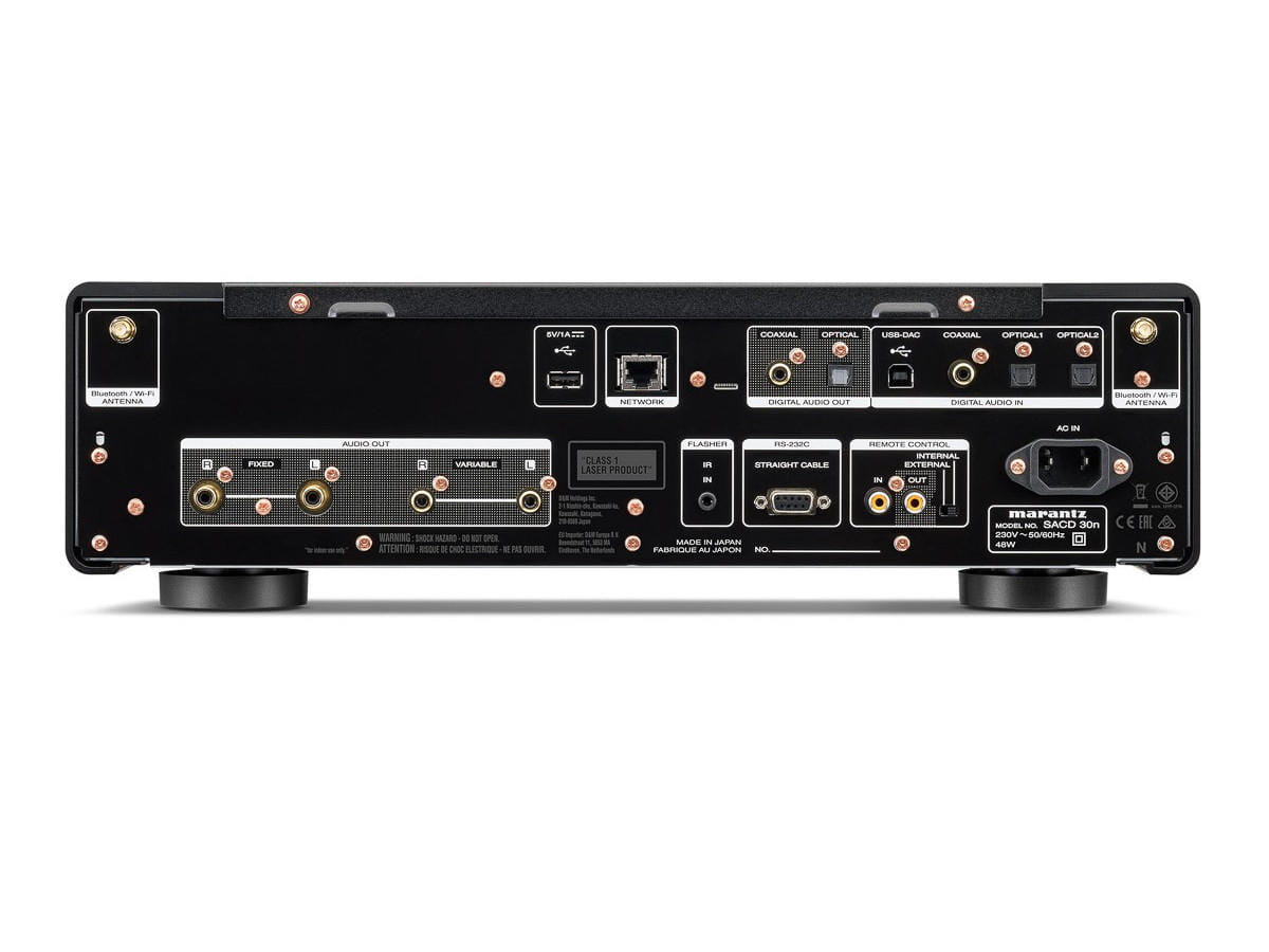 SACD 30n został stworzony, aby zaspokoić wszystkie oczekiwania współczesnego audiofila, który chce połączyć dużą kolekcję muzyki cyfrowej z wiodącymi usługami muzyki online. Marantz SACD 30n łączy w sobie klasyczny odtwarzacz SA-CD / CD klasy premium z nowoczesnym źródłem cyfrowym. Odtwarza pliki wysokiej rozdzielczości, w tym FLAC HD i DSD z domowej sieci, lokalne nośniki USB oraz źródła internetowe, takie jak usługi strumieniowe i radio internetowe. Wyposażony jest w funkcję streamingu HEOS, obsługę głosową i multiroom oraz przetwornik cyfrowo-analogowy, a także obsługę Apple AirPlay 2 i Bluetooth. SACD 30n jest nowatorskim urządzeniem, które obsługuje formaty plików aż do 11,2Mhz Quad-DSD i 384kHz/32-bit PCM za pośrednictwem USB-B/USB-DAC.