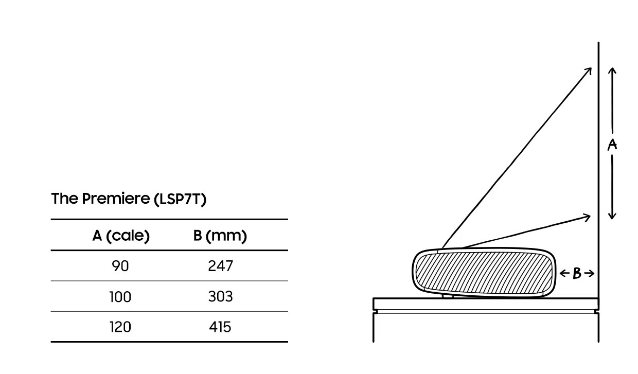 Po prostu umieść go przy ścianie Prosty w instalacji i podłączeniu, Premiere został zaprojektowany tak, aby stać tuż przy ścianie z łatwo regulowanym rozmiarem ekranu.