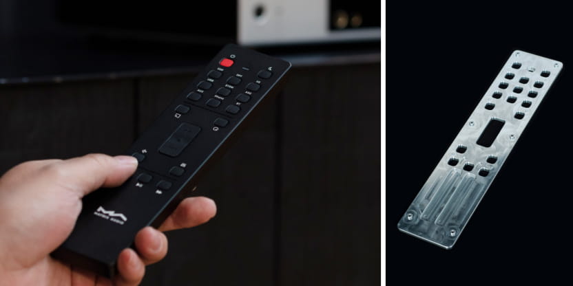 Poważnie traktujemy każdy szczegół produktu, więc pilot nie pozostaje wyjątkiem. Nowy pilot RM4 posiada funkcje sterowania odtwarzaniem, dzięki czemu przełączanie utworów, odtwarzanie, pauza i inne operacje są wygodniejsze. Dwa programowalne przyciski można ustawić na często używane funkcje za pomocą aplikacji MA Remote. Wykonanie z połączenia aluminium i wysokiej klasy tworzywa sztucznego sprawia, że pilot jest wygodny w dotyku.