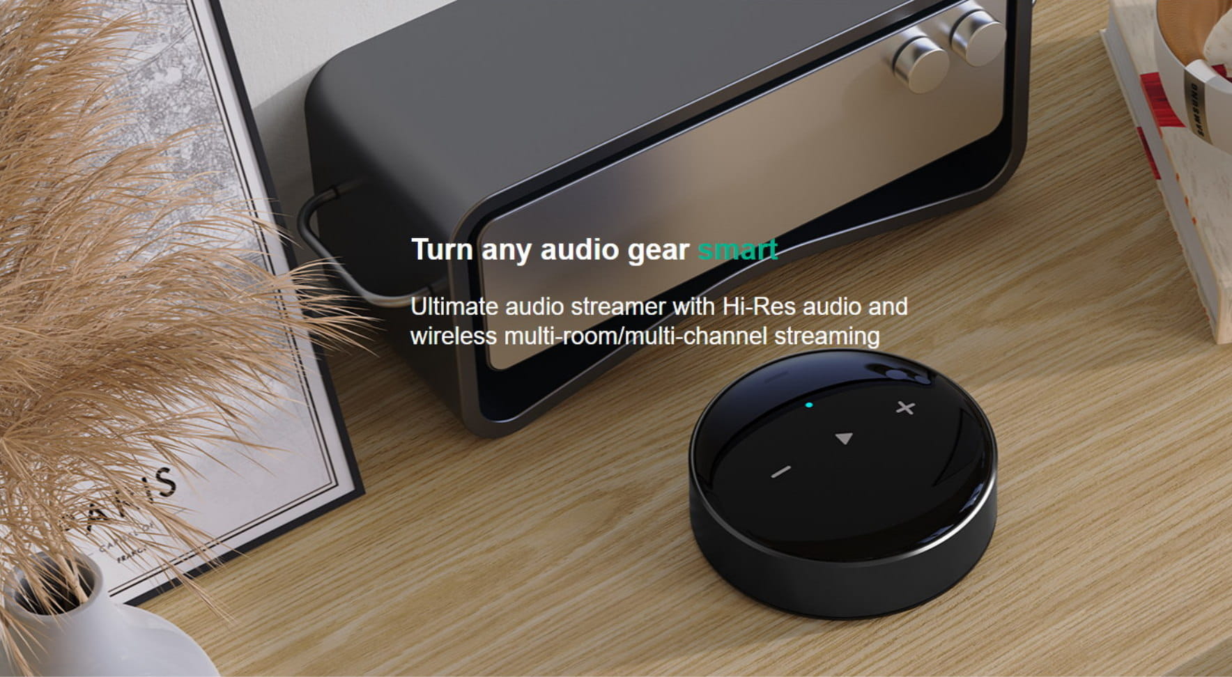 WiiM Mini to wysokiej jakości streamer audio z dźwiękiem Hi-Res i bezprzewodowym strumieniowaniem dźwięku multiroom/multichannel. Jest idealnym rozwiązaniem by dodać funkcje streamingu do starszej generacji, stacjonarnego zestawu audio lub kolumn aktywnych. Odtwarzacz obsługuje AirPlay2, Multiroom Stereo. Współpracuje z asystentami głosowymi Alexa i Siri. Przesyła strumieniowo dźwięk w wysokiej rozdzielczości z serwisów Spotify, Amazon Music i innych.