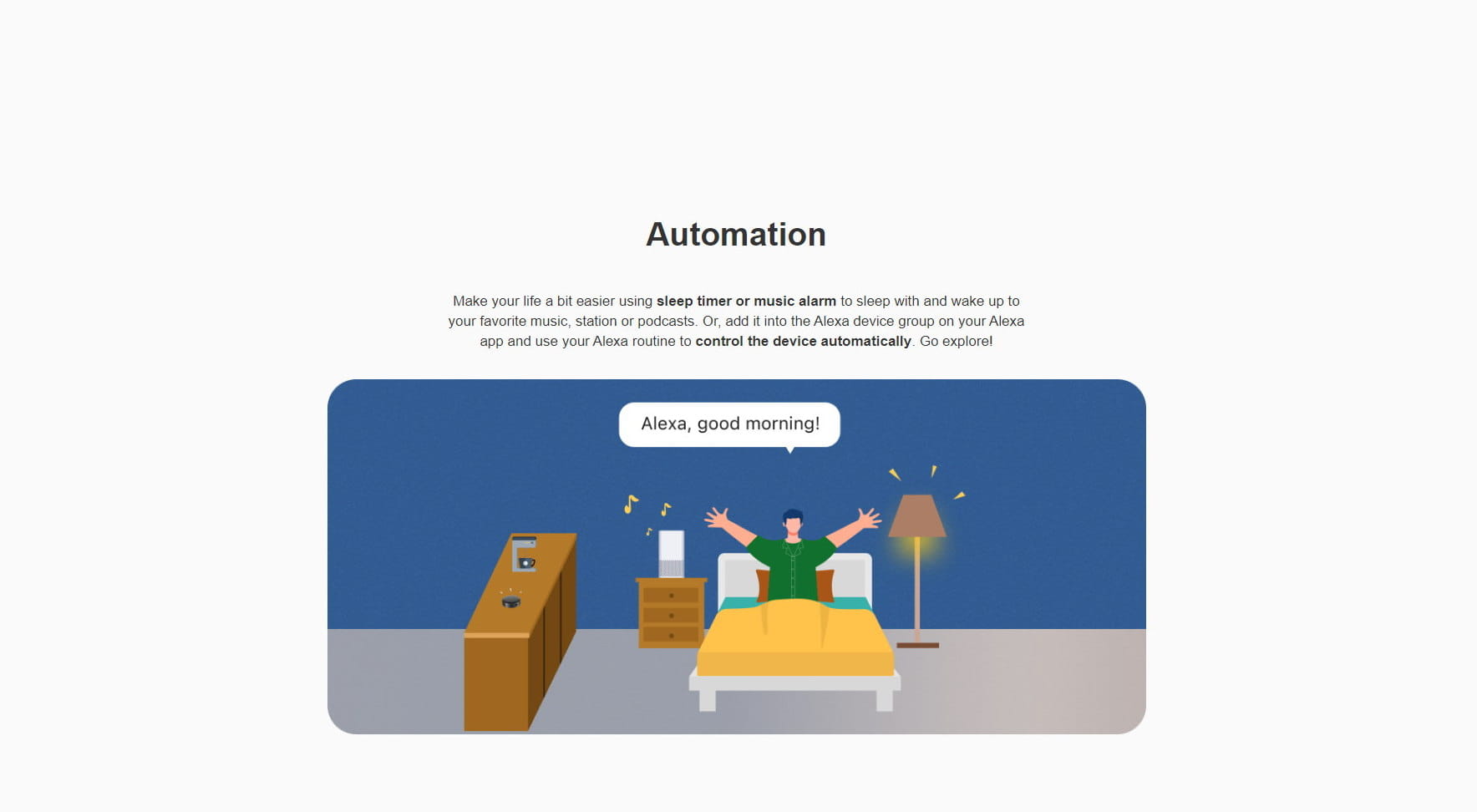 Użyj aplikacji WiiM Home, aby pomóc w ustaleniu regularnych nawyków dotyczących snu, ustawiając alarm budzenia lub tworząc wyłącznik czasowy z ulubioną muzyką, stacją radiową lub podcastem. Użyj aplikacji, aby dostosować głośność i czas odtwarzania, aby lepiej spać i obudzić się wypoczętym.